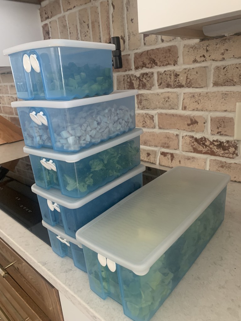 It is not easy to eat healthy, so I like to prep for it just like I would do if I was making meals for the freezer. I try to not buy a large quantity of vegetables and just commit to buying more every 3 – 4 days. I use the Tupperware fridgesmart containers and they work really well to keep vegetables fresh longer. You just need to set the 2 tabs according to what you are storing.