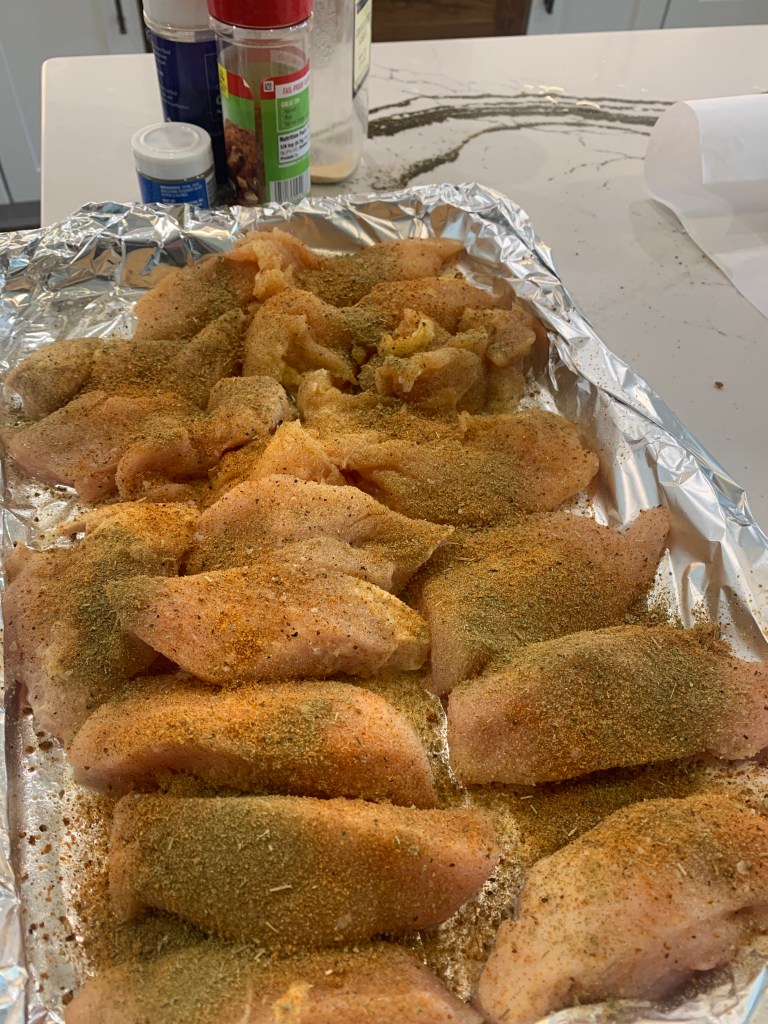 Since many of my recipes call for chicken, I just bake a large tray of chicken breast. I season them real well and then cut up into bite size pieces.