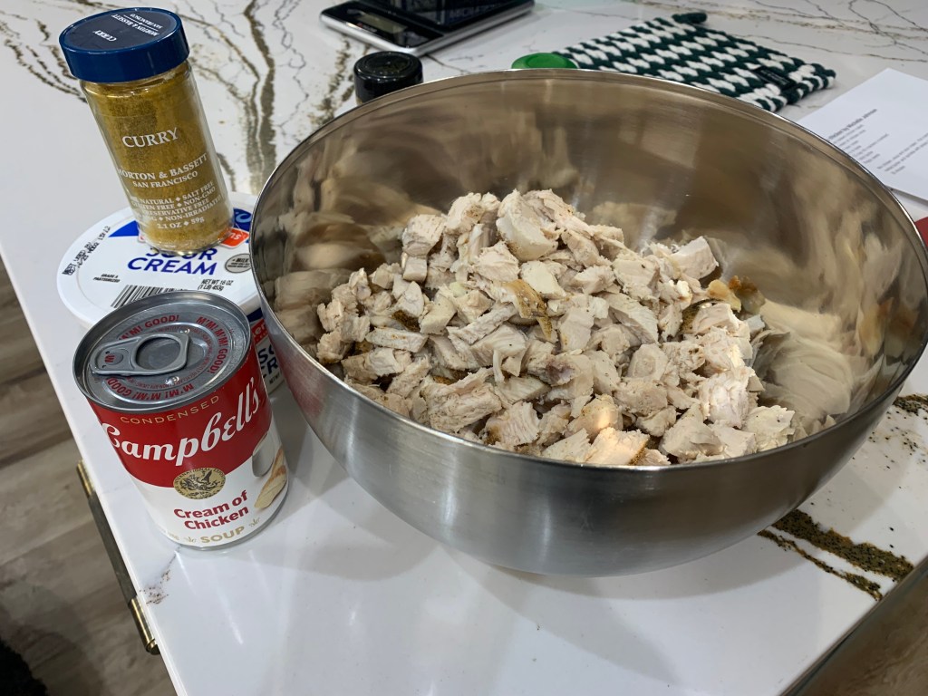 I like to organize my recipes so I make things in an order that makes sense. I start with super easy ones so I can feel accomplished right away! The chicken curry is a favorite – my friend Michelle made it for me when I had my twins. Curry is very popular in Ireland too – I ate a lot of it when I was a student there. It’s not a lot of ingredients either. Cream of chicken soup, sour cream and curry to taste. I use a lot of curry since I love the taste! You mix it all together and put in a baking dish. Since Im freezing it, I wrap it at this point. When Im ready to bake it I melt a stick of butter and mix with a sleeve of crushed ritz crackers and then sprinkle with poppy seeds. You can eat by itself, or over rice or pasta. Its so yummy! When I make this for my son and daughter in law, I include directions on the package and give him a stick of butter, the poppy seed and the crackers. Its so helpful that when they pull it our for dinner, they have everything they need.