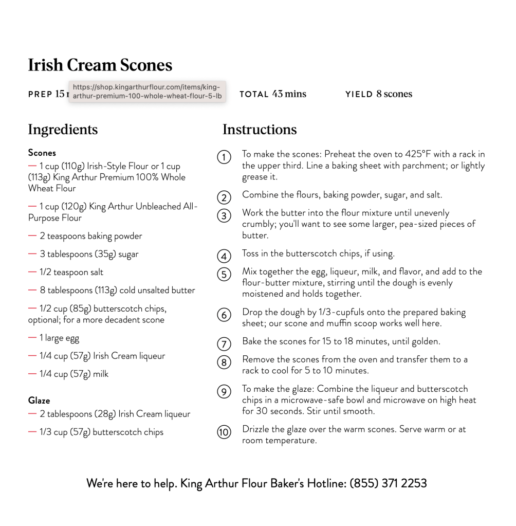 I made these Irish Cream Scones from King Arthur today. Very easy and you’ll have all the ingredients on hand! (Don’t all Irish families have Baileys in their bar? If not, you’ll need some!)