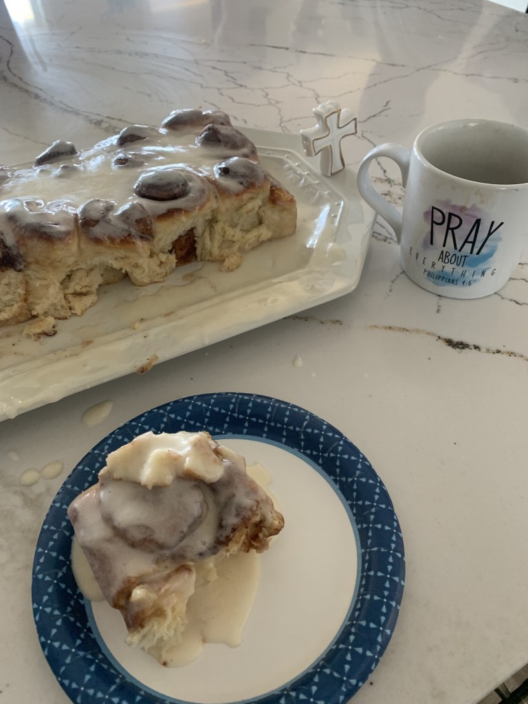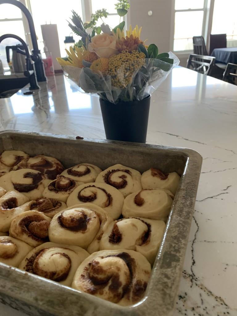 There is something pretty cool about having bread dough rising on the counter on Easter Morning. It was even better when I rolled the dough into the cinnamon rolls.