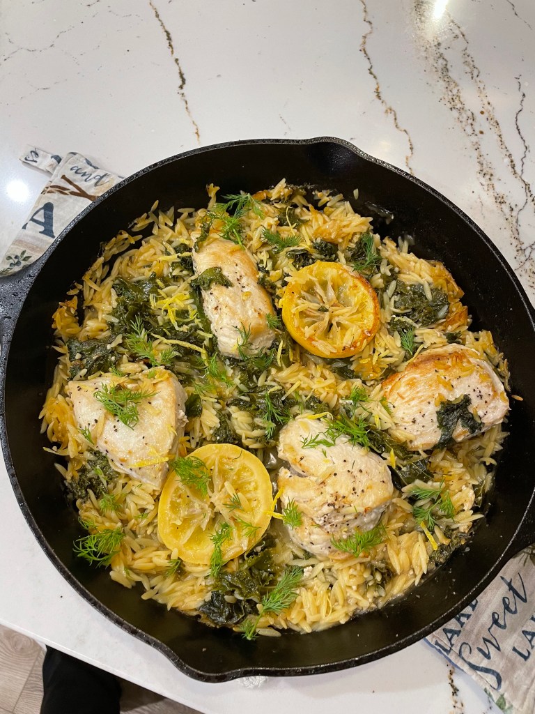 Check out Half Baked Harvest for other yummy recipes! https://www.halfbakedharvest.com/one-skillet-lemon-butter-chicken-and-orzo/