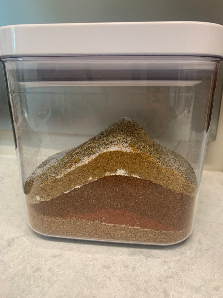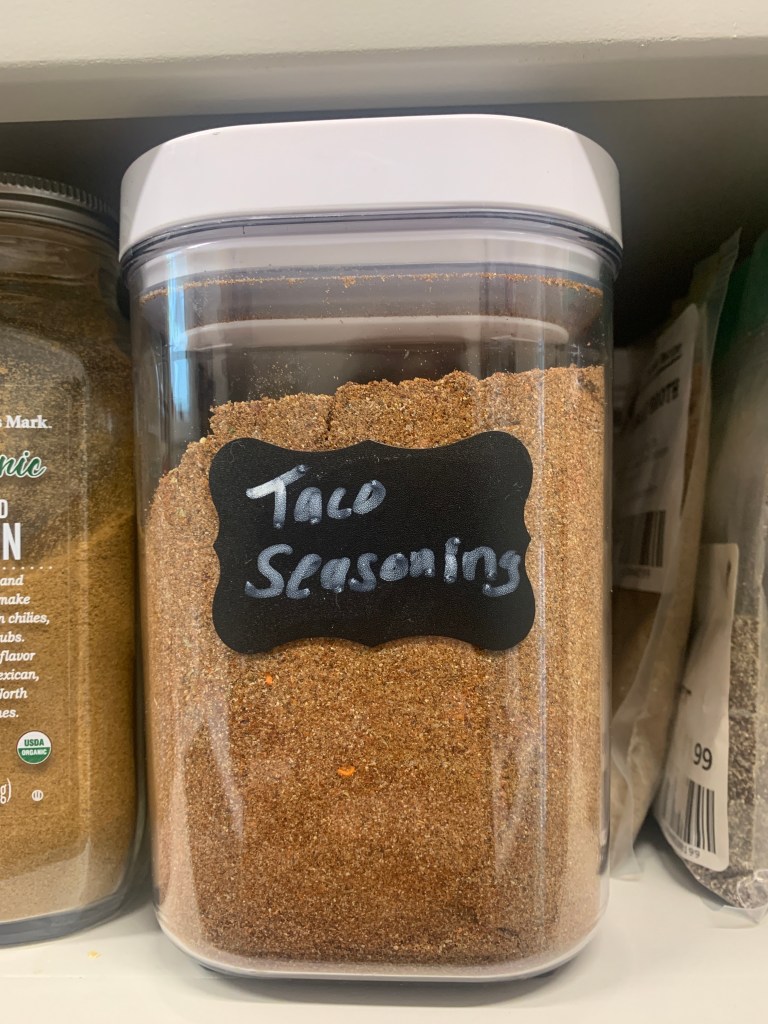 I decided to start making my own seasonings to eat less processed ones. We make tacos and nachos often so I thought I’d start with taco seasoning. My husband has said for years that the packets don’t have as much flavor as they used to. I’m anxious to make adjustments to this one based on our tastes. My friend gave me this recipe but as I did searches, it seems like this is a common one. I did find one that added cayenne pepper so if we need more spice, I think that’s what I’ll add. Since this was my friends and she said it was really good, I wanted to follow the recipe before I made any adjustments for our taste. You would add 2 T of the mix per pound of meat.