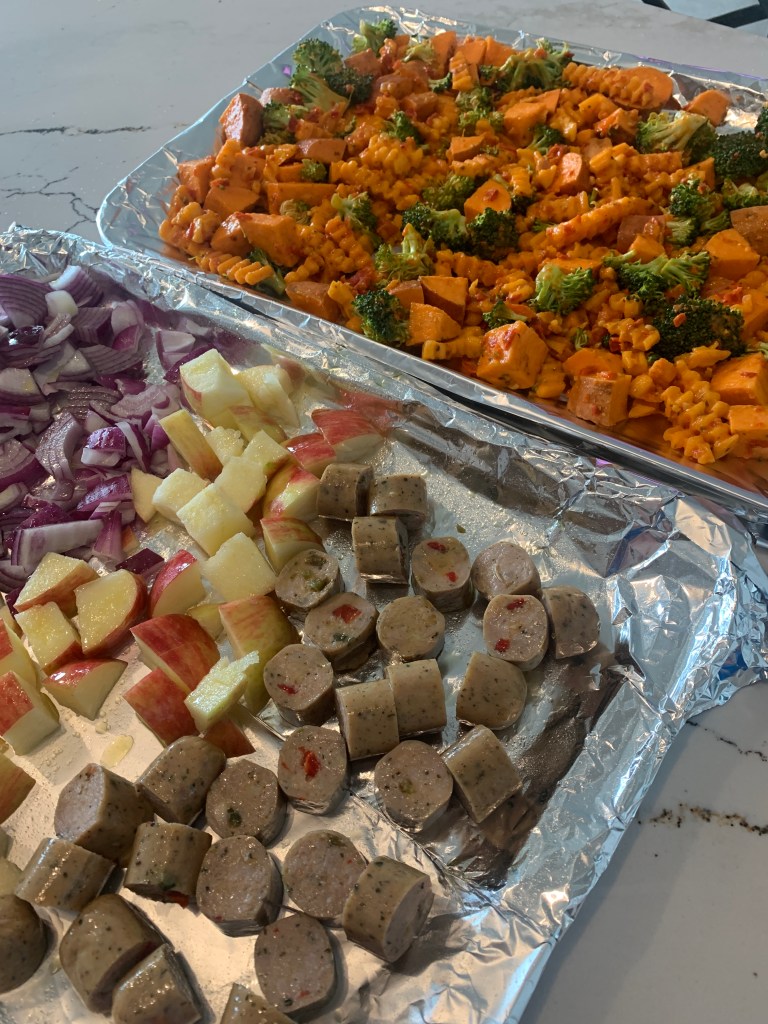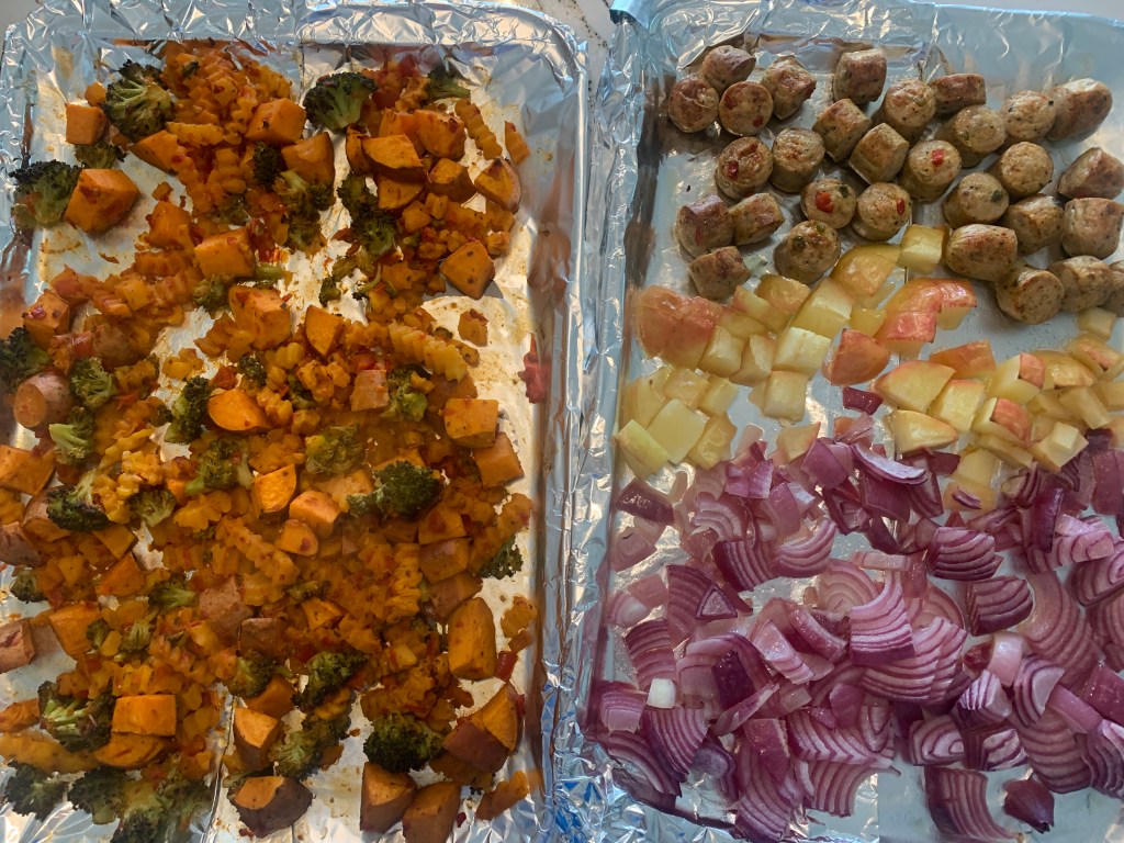 Then I added in the 2nd baking sheet. I did it this way so that I had equal amounts of each ingredients in each serving.