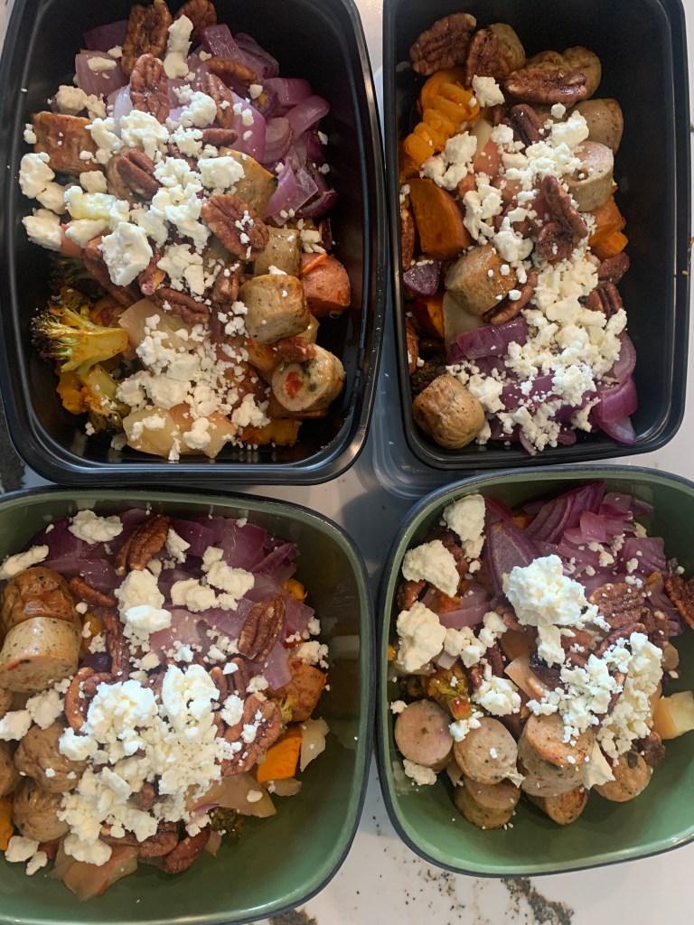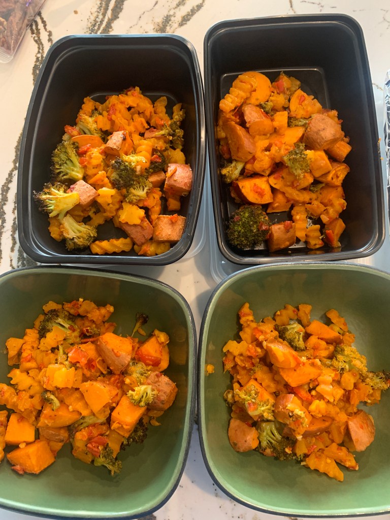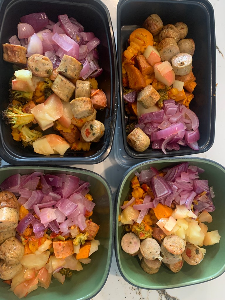 It makes 4 servings so I did a bowl for my husband and I and I did two bowls for the fridge. I started with the one baking sheet first.