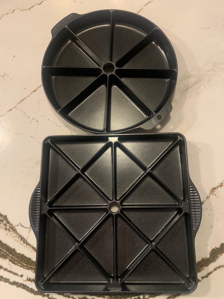 If you do not have a scone pan, work dough into a ball and then roll out to cut wedges. I used scone pans and I highly recommend doing that. They are so easy to use – you just put enough of the batter into each triangle. I have 2 different pans. I like them both the same. If the batter is too dry you can add a little more heavy cream.
