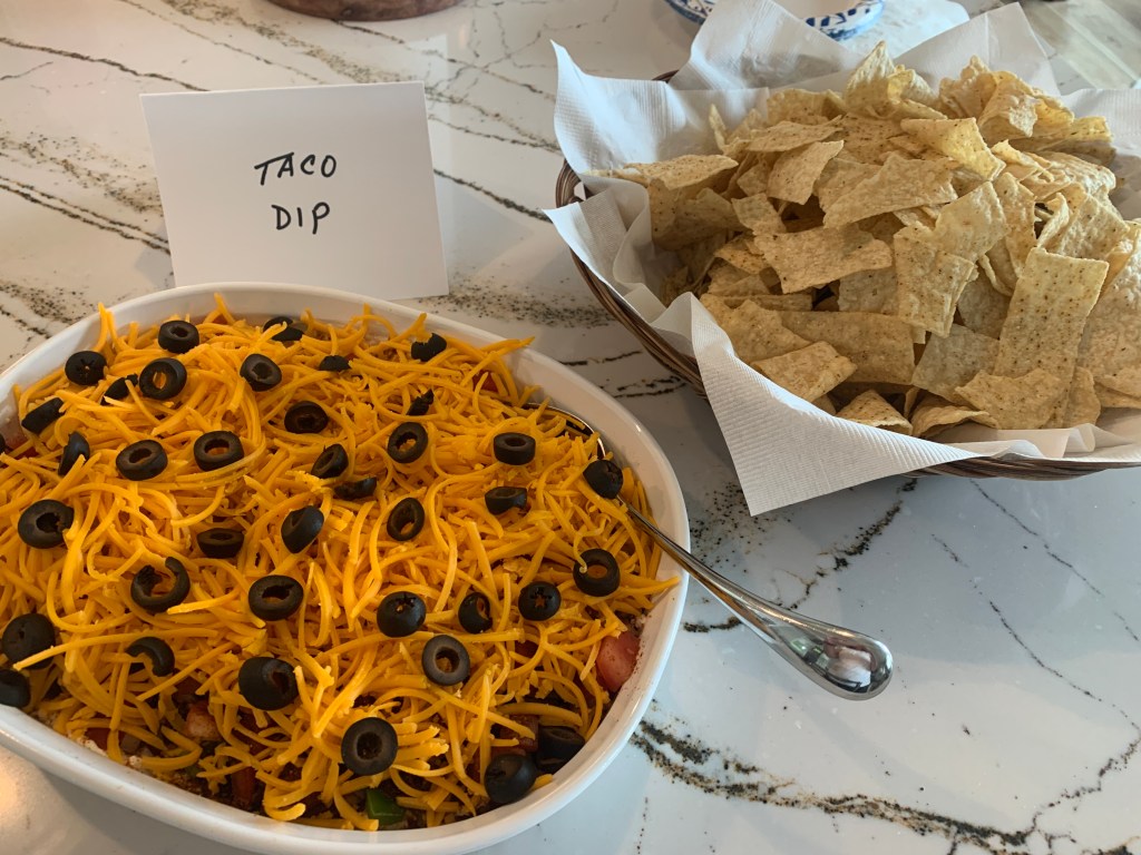 This is yummy year round, but since you use yellow cheddar cheese and black olives – it’s perfect for a Halloween party, or a fall party. I used peppers as bowls to hold vegetables. It’s so fun to cut faces out of the peppers and use them for any fall gathering! They are great sizes and come in great colors!