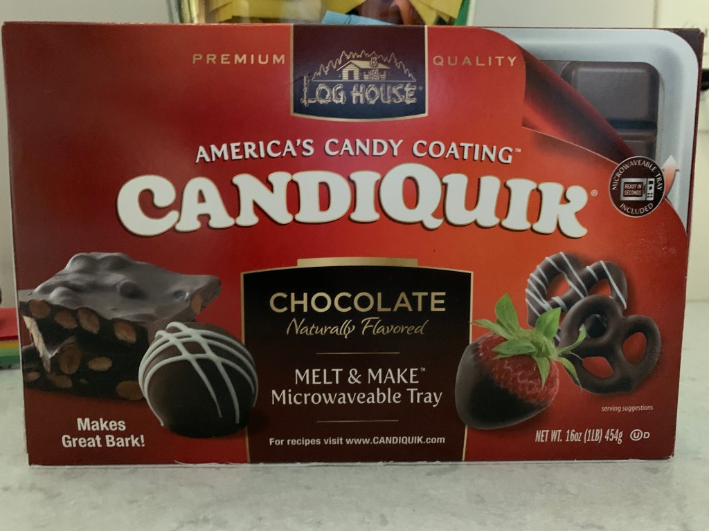 I use candyquick. I like the version that comes in a tray. This is just personal preference though. I’m a chocolate fan so I usually only get chocolate. You can get white chocolate or you can buy any of the colors of candy melts to create the look you want for your occasion.