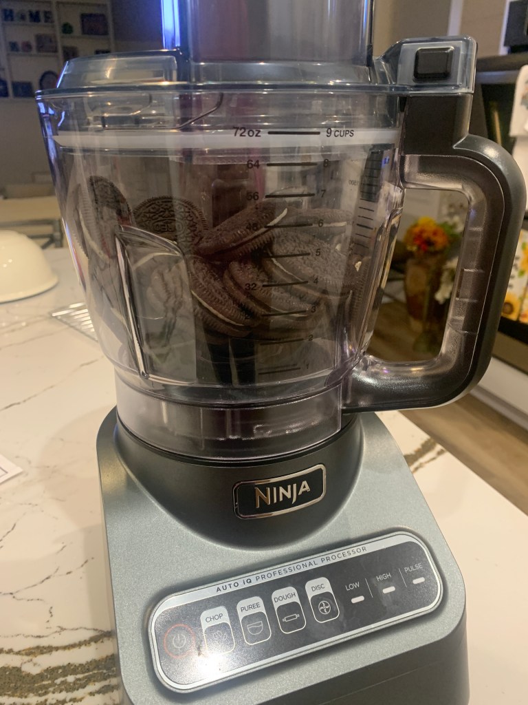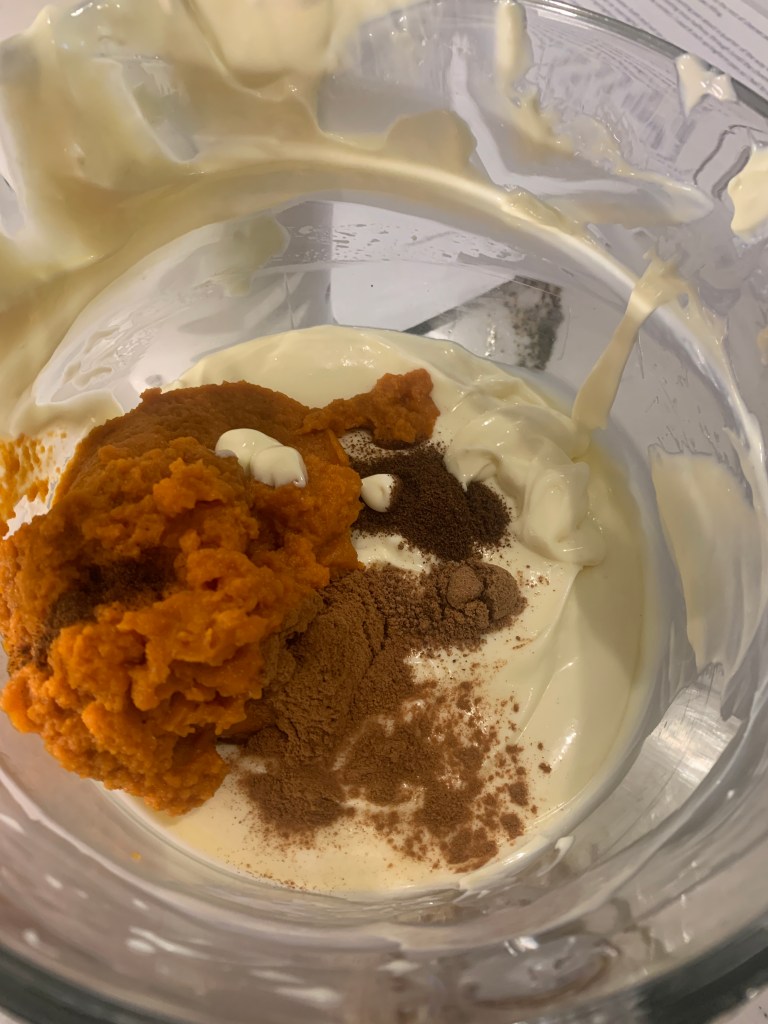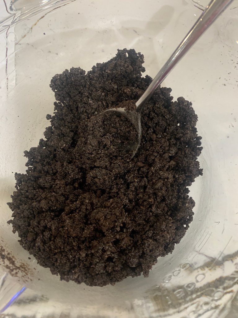 You spread 1 1/2 cups of this on to the Oreo crust. Smooth it out and stick in the freezer for 10 -15 minutes.